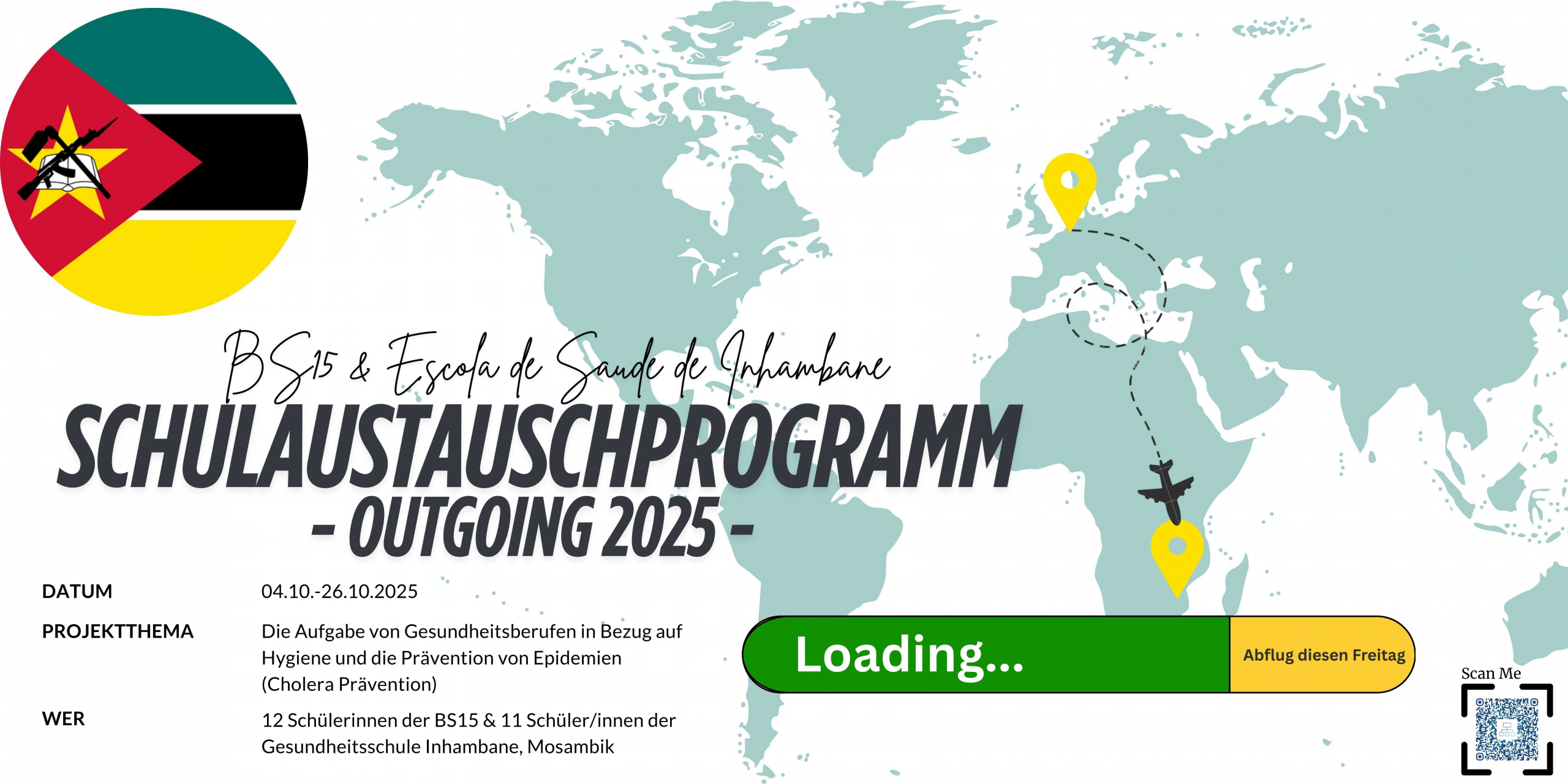 Unsere nächste Reise zu unserer Partnerschule nach Inhambane in Mosambik findet im Oktober 2025 statt. Drei Kolleg:innen fahren mit einer Gruppe von sehr engagierten Schülerinnen zu unserer Partnerschule. Ziel der Begegnungsreise ist der Austausch zwischen unseren Kulturen und eine partnerschaftliche Projektarbeit zur Prävention der Infektionskrankheit „Cholera“.