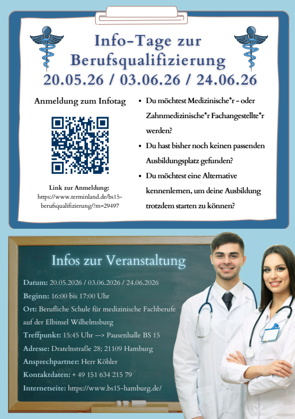Info-Tage am 20.05.26/ 03.06.26 /24.06.26 in der Berufsqualifizierung im Ausbildungsberuf Medizinische/r & Zahnmedizinische/r Fachangestellte/r